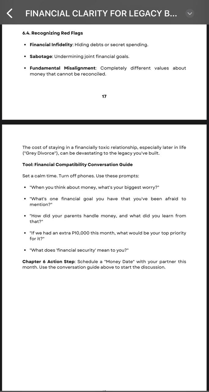 Don't let silent financial conflicts undermine a lifetime of work. In my book, Financial Clarity for Legacy Builders, I provide the complete framework for couples to build a unified financial vision, protect their assets, and ensure their legacy is built on a foundation of trust and transparency.