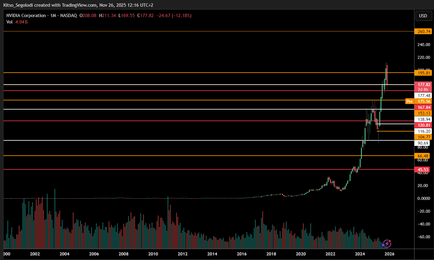 NVIDIA (NVDA), the undisputed leader of the AI revolution, is facing a significant test of investor confidence. A sharp, high-volume decline has wiped out over 12% of its value, pushing the stock to a critical support zone. The outcome of the battle at this level will likely dictate the stock's trajectory for the coming weeks.