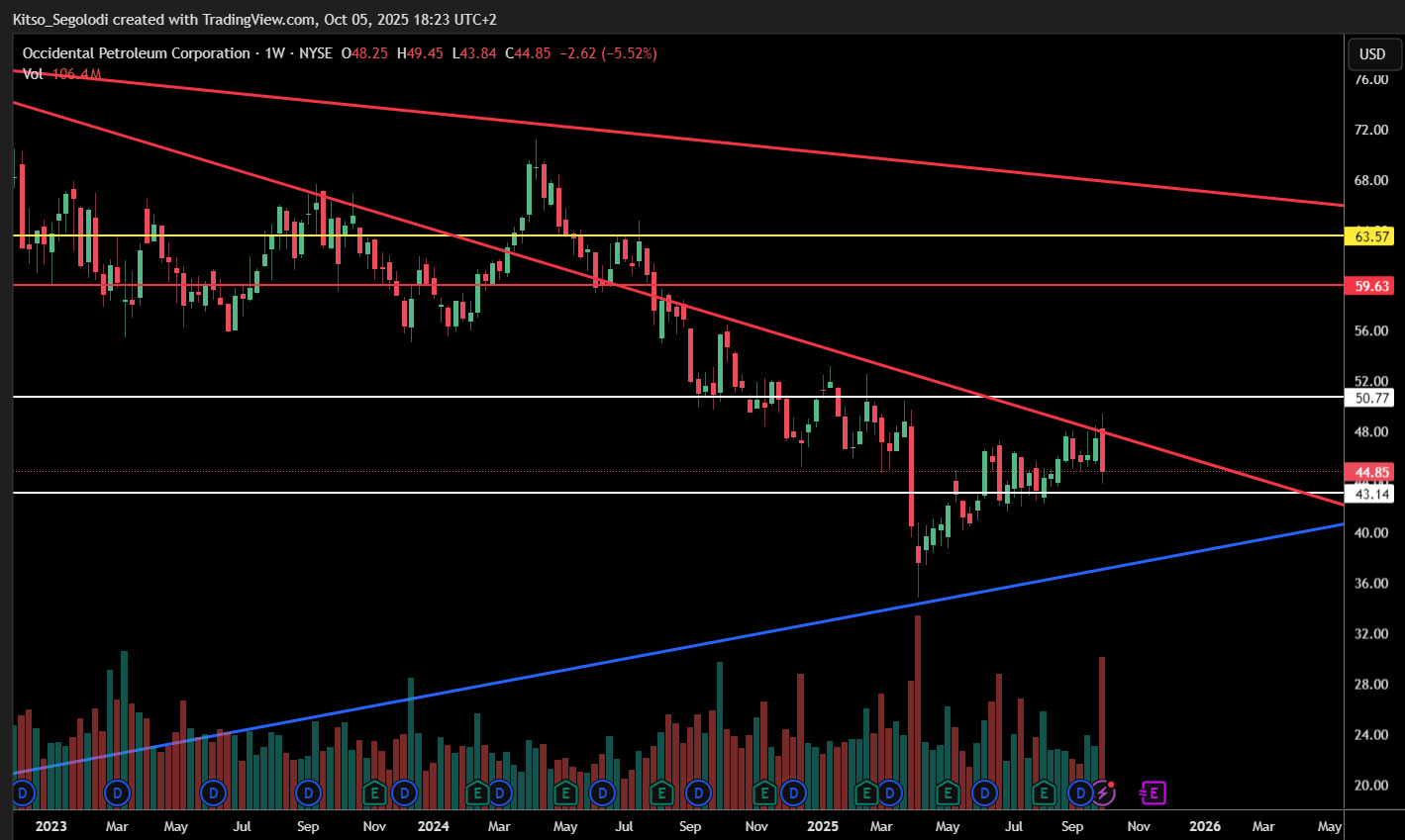 Occidental Petroleum Corporation (NYSE: OXY) is trading at $44.85, reflecting what appears to be a healthy profit-taking phase after recent rallies. But beneath the surface, the chart and fundamentals suggest a potential setup for bullish continuation — especially for investors seeking exposure to energy-backed assets with institutional momentum.